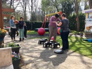 De grote buitenruimte is volledige omheind en daagt uit tot actie. Naast de belevings- en moestuin zijn er een vogelnestschommel, trampoline, zand/watertafel en zandbak aanwezig.