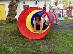 In de groepsruimtes is speelgoed en ontwikkelingsmateriaal aanwezig. Voor cliënten die behoefte hebben aan een rustige omgeving hebben we diverse hoekjes gecreëerd. Ontspannen kan in een van de twee badkamers met therapiebad of in de snoezelruimte.